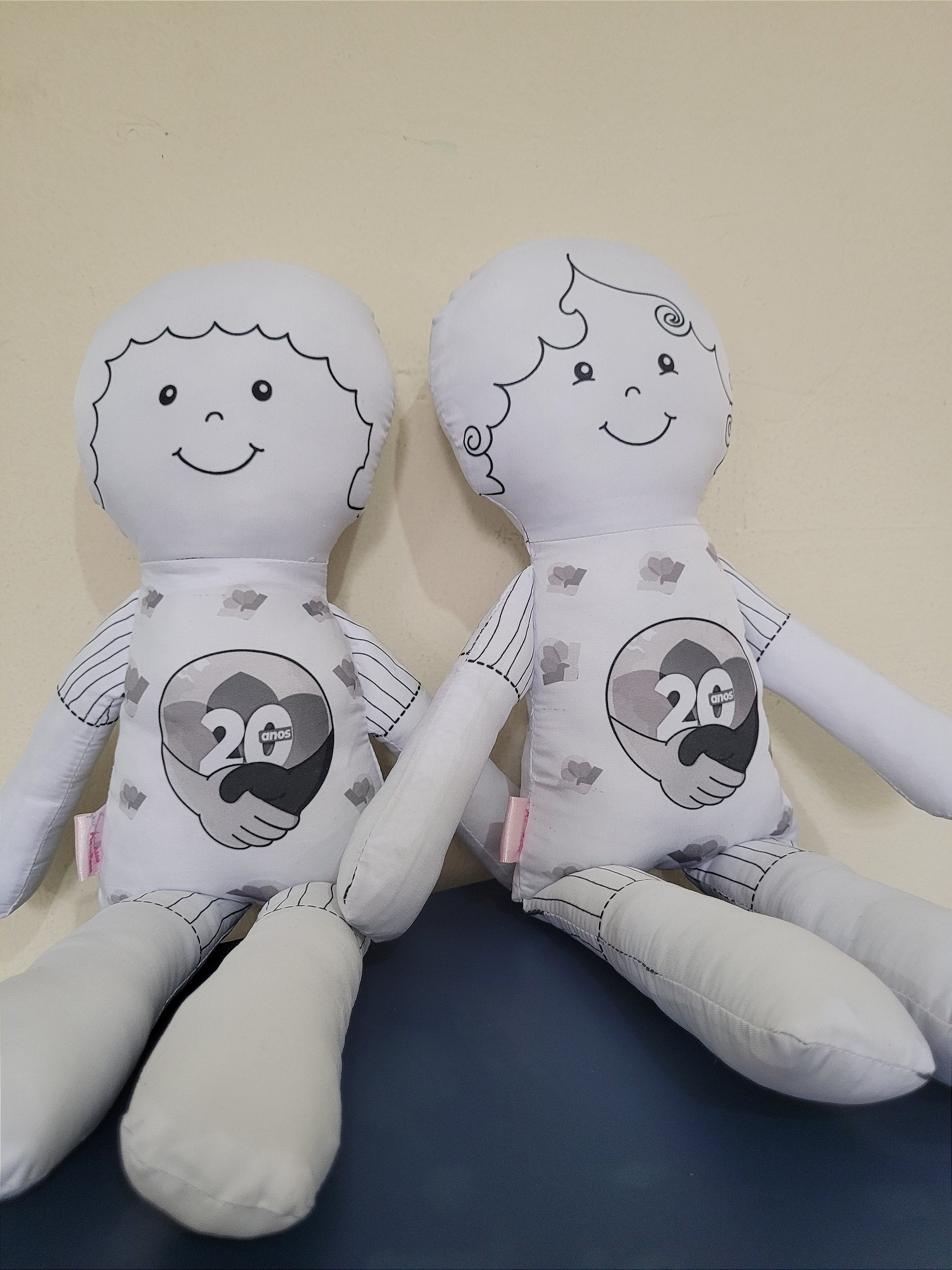 Boneco pinte e lave com a logo do Instituto Mundo Novo